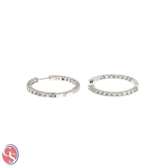 [1] Pair 14kt white gold diamond inside/out hoop earring set with (40) round brilliant cut diamonds, apprx. 2.3 - 2.4mm, estimated 2.00 cttw., H/I, I1-I2; 26.5mm outside diameter; 6.0 grams