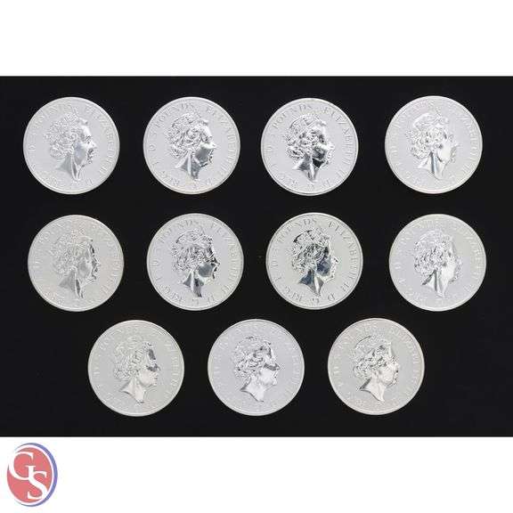 COINS: [11] 2022 Great Britain Royal Tudor Beasts 'Lion of England' .999 fine silver coins - Two troy ounces each